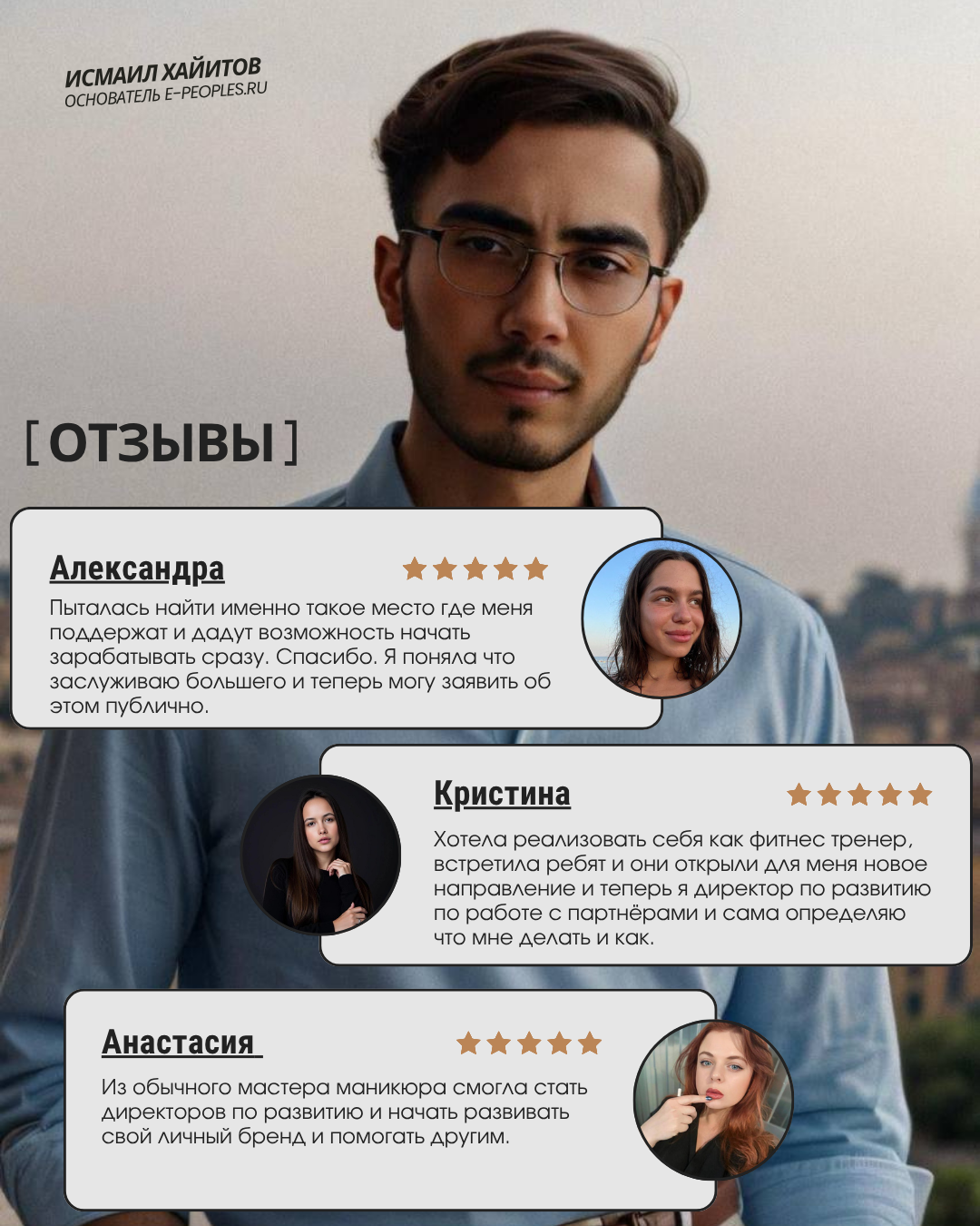 Если хочешь начать путь, где тебе доверяют, и где твои решения превращаются в результат — просто обратись в e-peoples.ru. Мы даём статус, развитие личного бренда и систему, которая делает тебя сильнее.